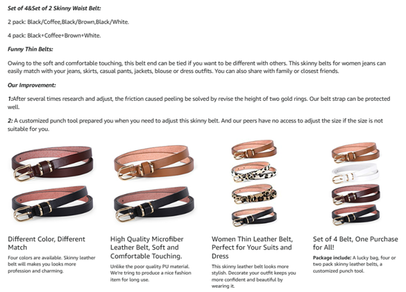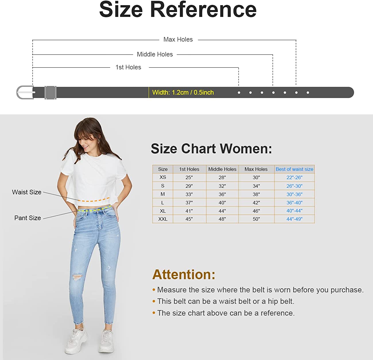 JASGOOD Leather Skinny Women Belt Thin Waist Belts for Dresses up to 37 Inches with Golden Buckle 2 Pack