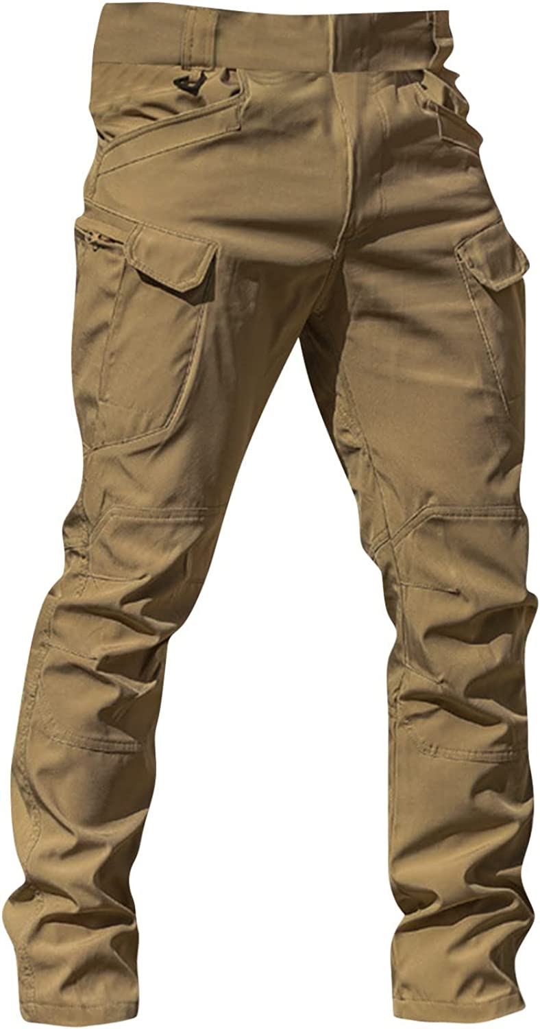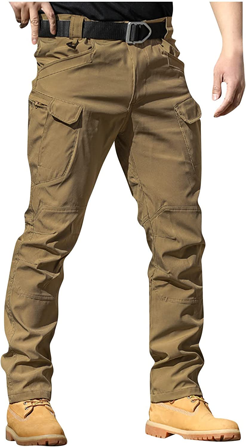Men's Hiking Cargo Pants with Pockets Straight Joggers Cargo Work Pants for Men Solid Color Outdoor Work Trousers