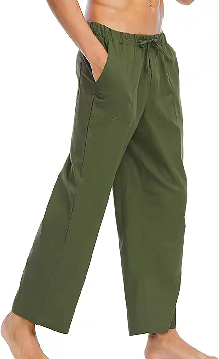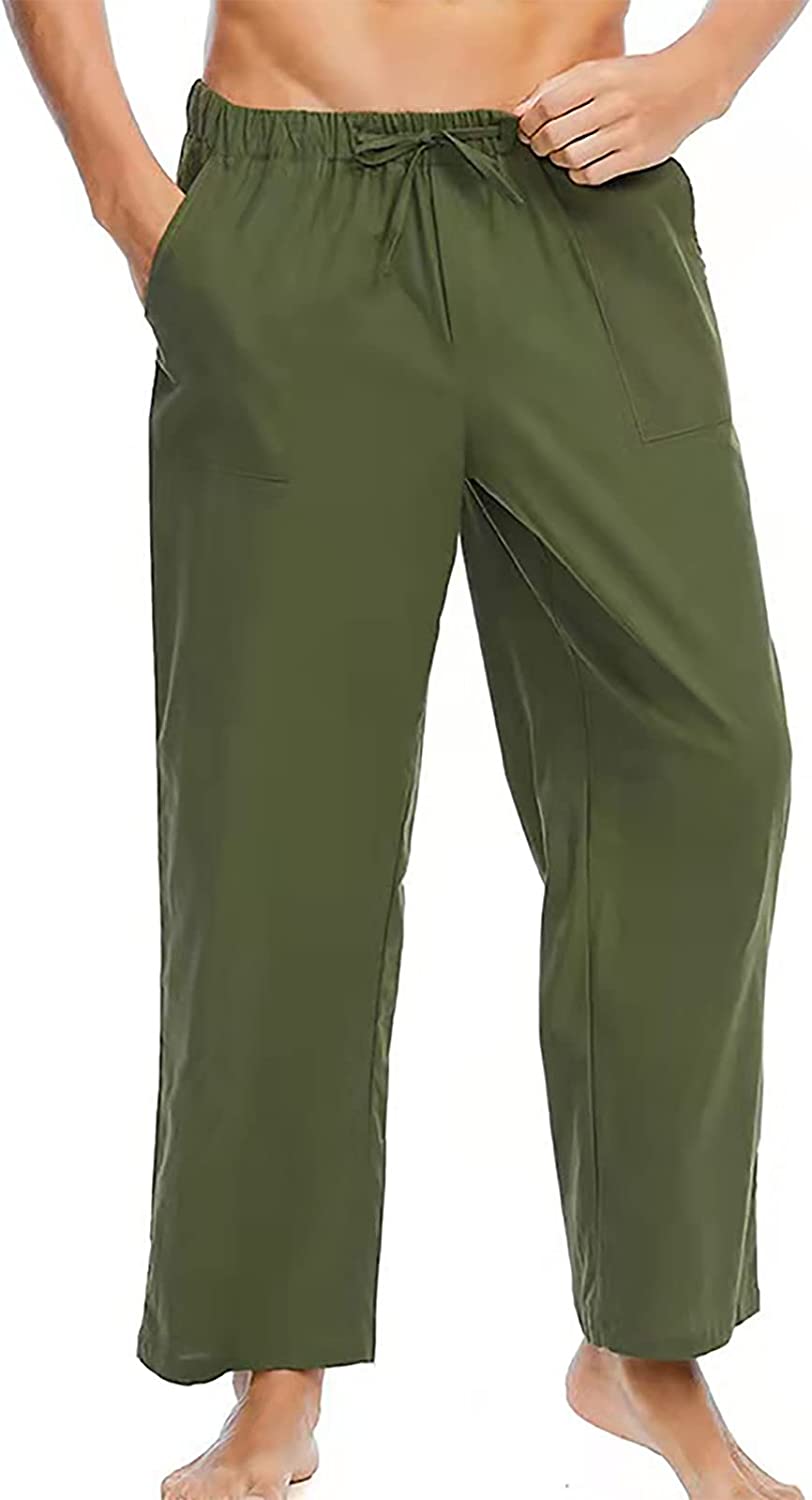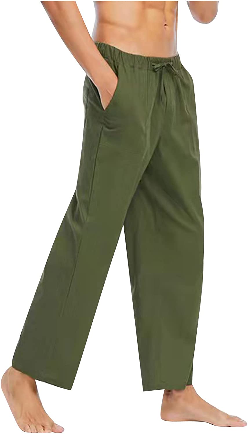 YKARITIANNA Men's Drawstring Cotton Linen Pants Casual Pants Elastic Waist Yoga Summer Pants Baggy Sweatpants for Men