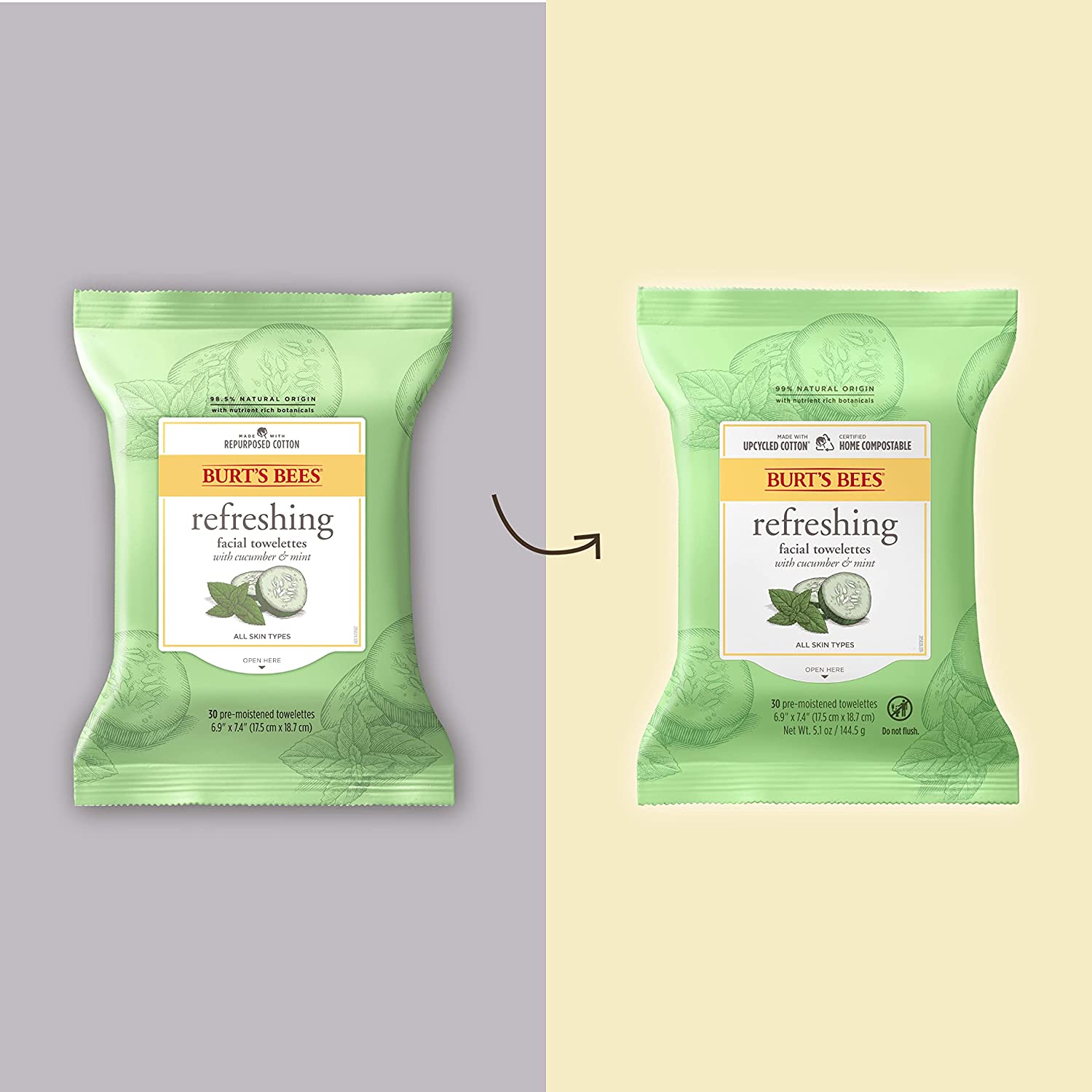 Burt's Bees Facial Cleansing Towelettes, Cucumber and mint, 30 Count (Pack of 3)