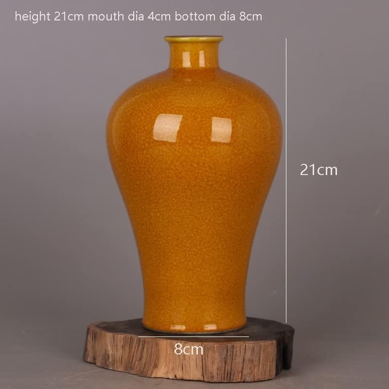 ZSEDP Jingdezhen Yellow Glaze Meiping Vase Antique Vase Collection Home Furnishings