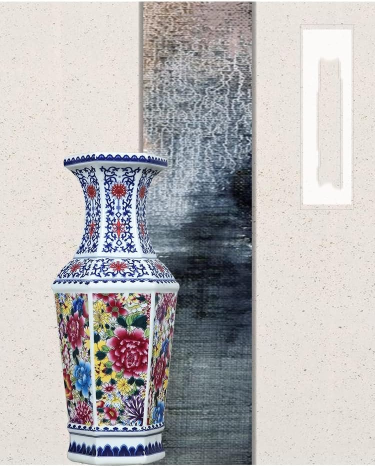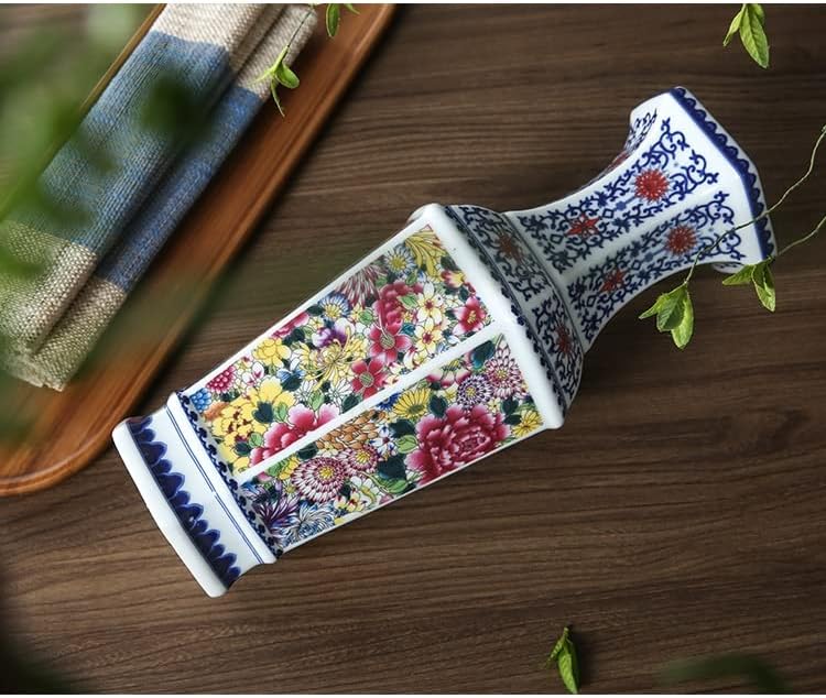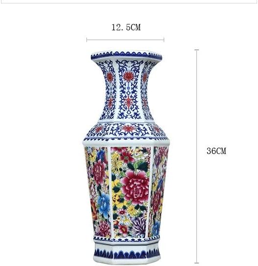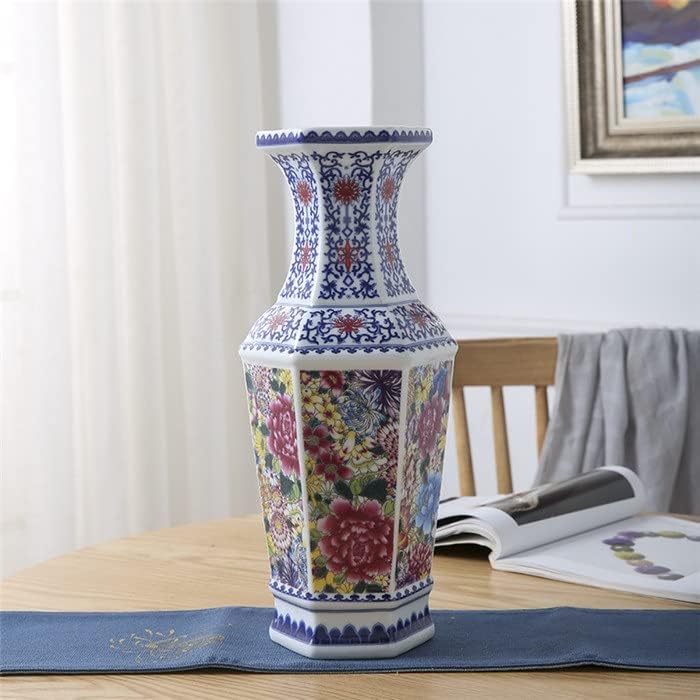 ZSEDP Antique Ceramic Vase Hexagonal Vase Blue and White Porcelain Chinese Style Living Room Flower Decoration Crafts