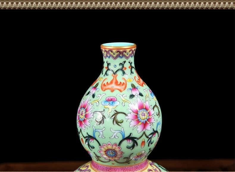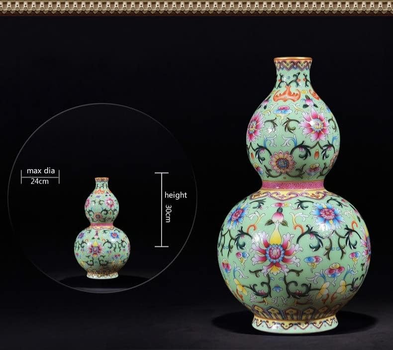 ZSEDP Chinese Style Antique Green Ceramic Flower Vase Collection Jingdezhen Porcelain Gourd Decoration Vase