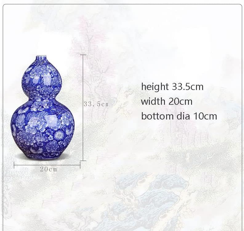 ZSEDP Jingdezhen Flower Pattern Vase Antique Porcelain Blue and White Porcelain Porch Gourd Ornaments