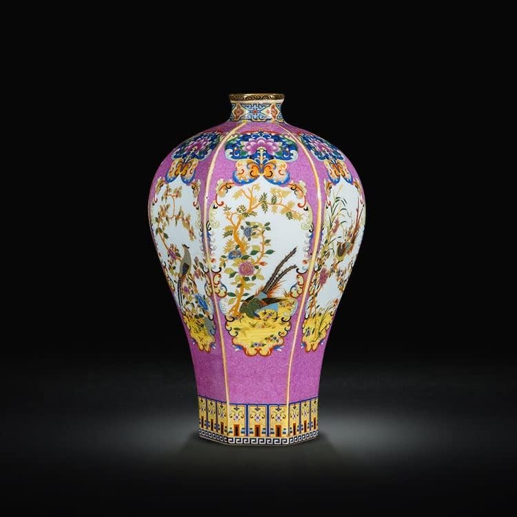 ZSEDP Ceramic Vase Ornaments Antique Enamel Porcelain Hexagonal Red Vase Gift Classical Home