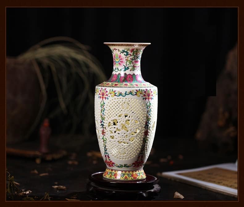 ZSEDP Antique Jingdezhen China Ceramic Vase Chinese Style Pierced Vase