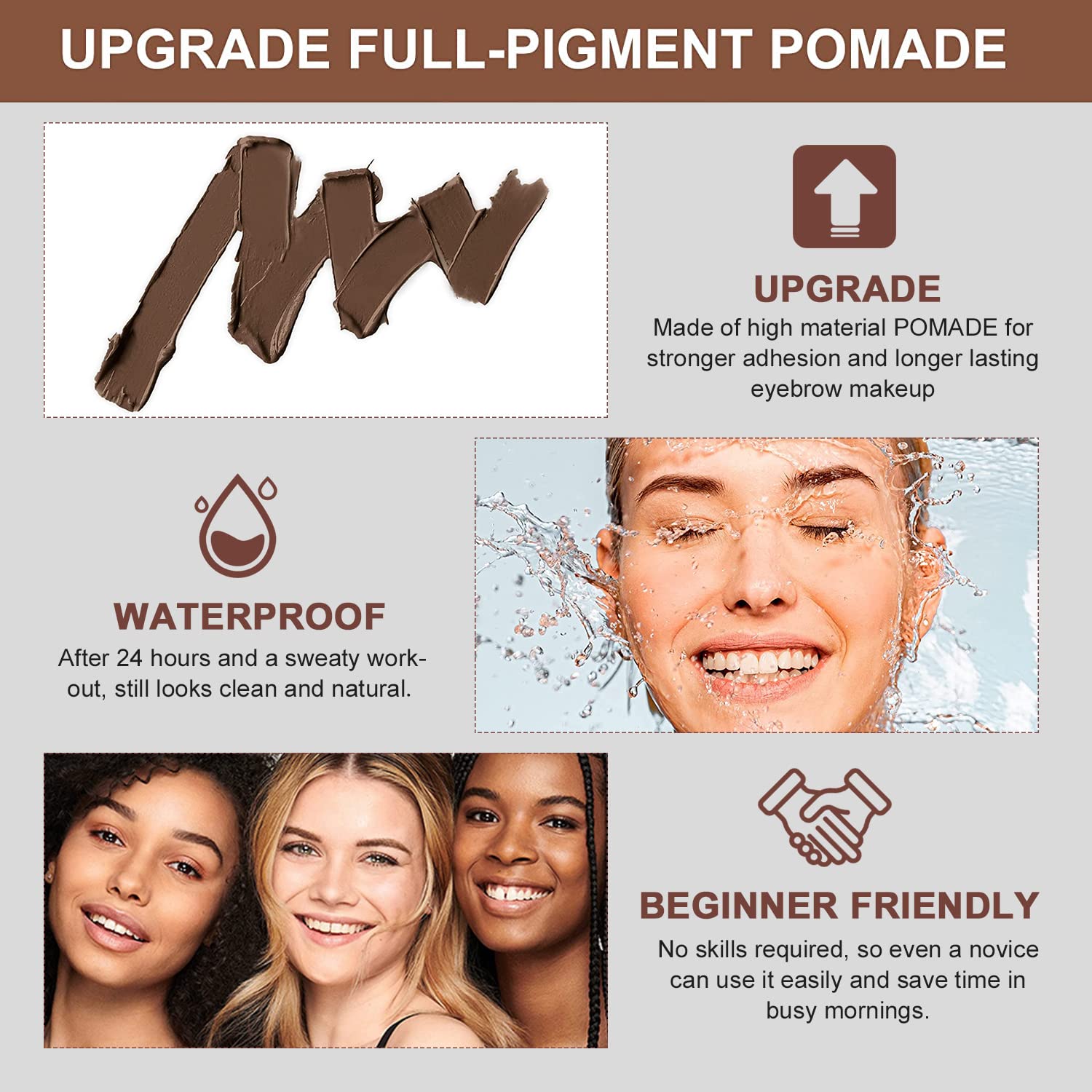 【WATERPROOF & LONG-LASTING】Unlike other eyebrow stamp (made of powder) , our durable eyebrow stamps are made of high material POMADE for stronger adhesion and longer lasting eyebrow makeup, more waterproof and sweatproof than normal eyebrow powder. After 24 hours and a sweaty workout, still looks clean and natural. When you are ready to take them off, simply wipe clean with your favorite make-up remover.