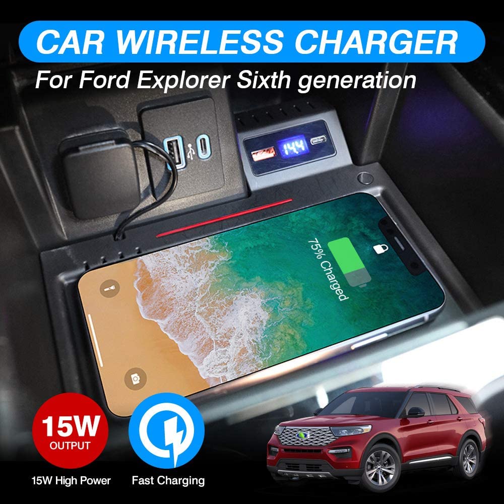 Custom Fit —— The wireless phone charger pad perfectly fit for 2020-2022 Ford Explorer, for any owners of Smart Phones with Wireless Charging Function. 3D data from the original car,won’t affect your car other function,No-Drilling,No need to plug the cable,plug the charger directly into the cigarette lighter to use it,plug and charge.