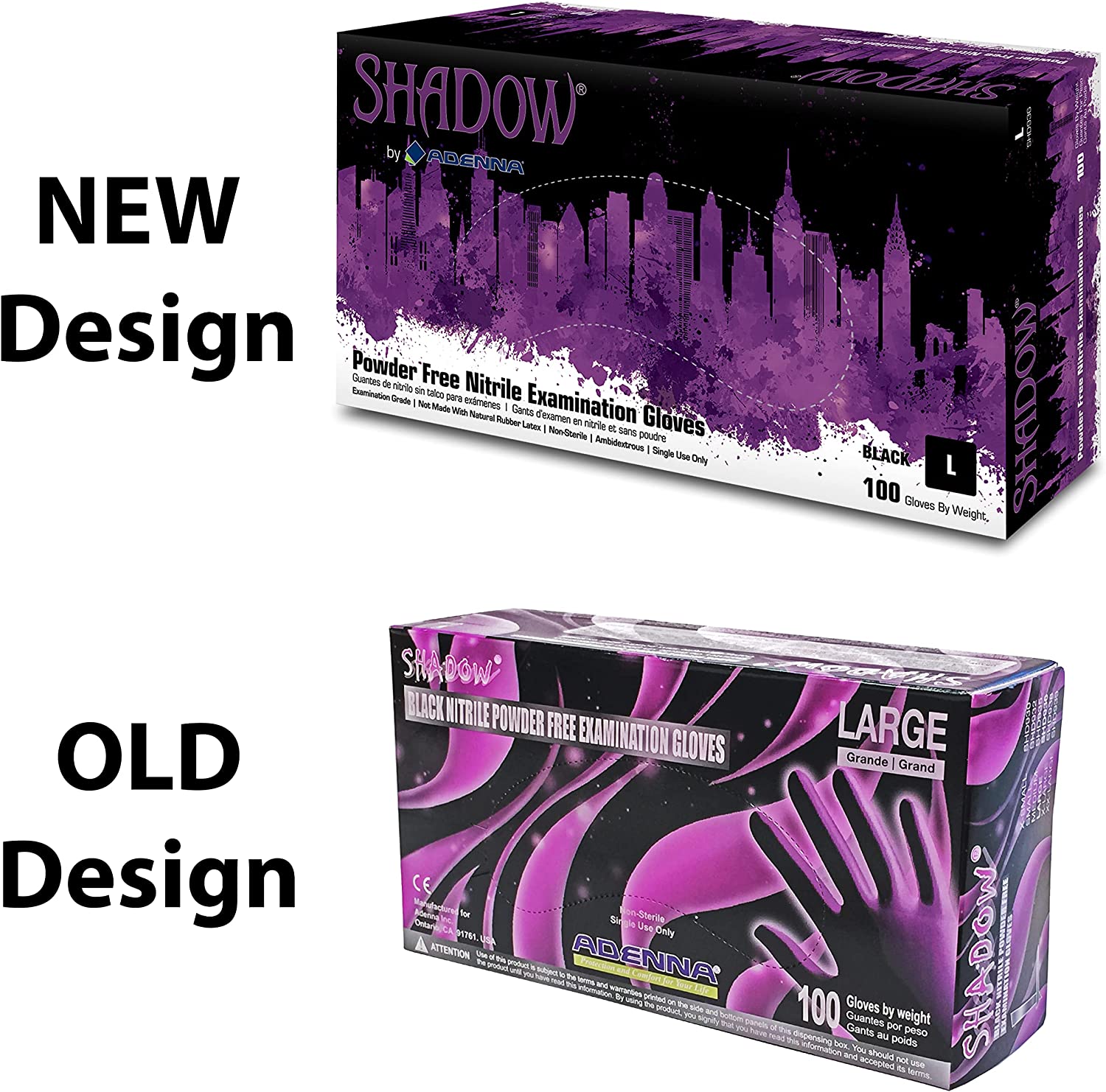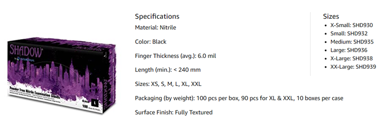 Adenna Shadow 6 mil Nitrile Powder Free Exam Gloves (Black, X-Small) Box of 99