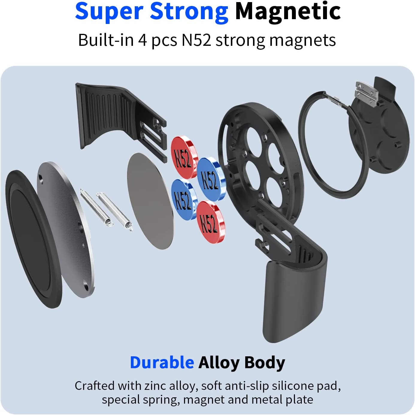 STRONGER MAGNETIC - Nicwea magnetic phone clamp with grip, built-in 4 pcs N52 strong magnets is 10x stronger than ordinary magnet, the magnetic function allows you to easily use your phone on more metal surfaces and magnetic car mounts.