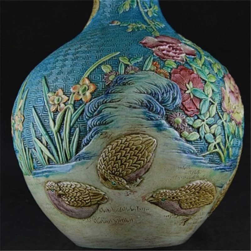 MJWDP Classic Green Ceramic Vase Embossment Antique Porcelain Flower Vase for Decoration