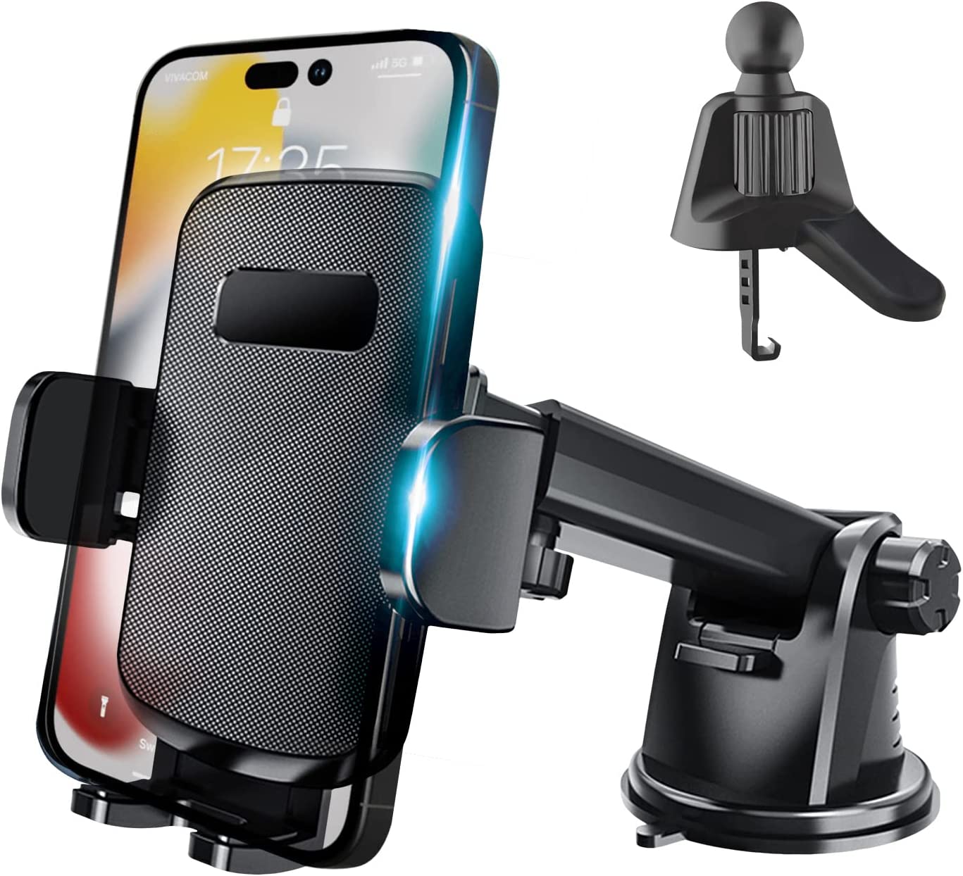 【Easy to Operate】The phone mount for car is easy to operate and can be operated by one hand. Press the button on the back of the car mount to open the clip with one click, and push the clip with one hand after placing the phone. This phone holder for car is suitable for 4-7 inch mobile phones, including all mobile phones with cases.