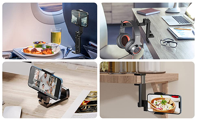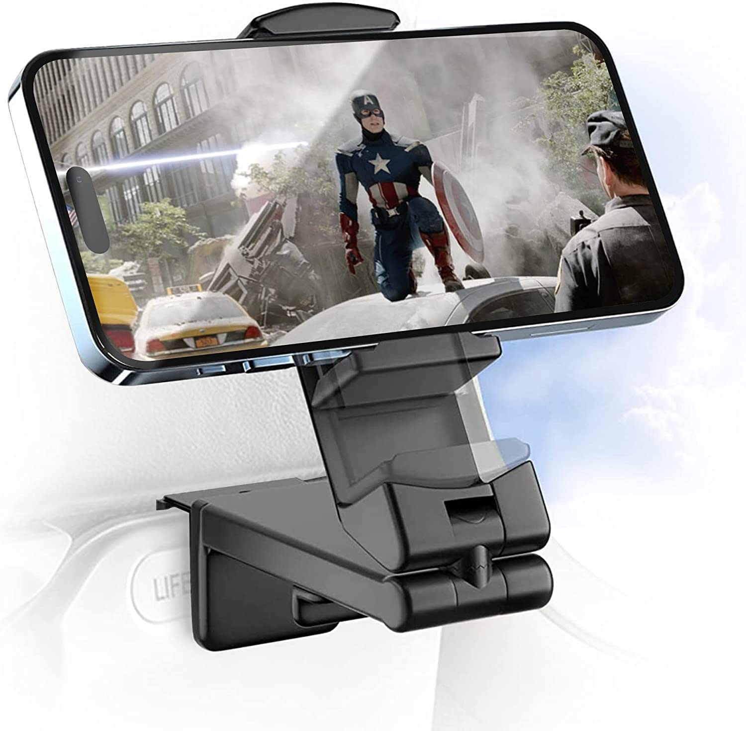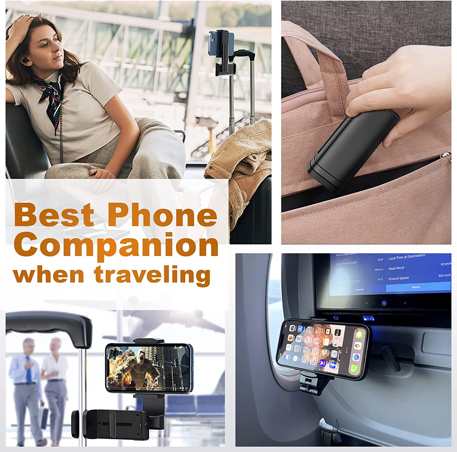 • This indispensable phone holder will help you hold your phone in any position. You can mount it on different seat backs or tables during the travel to free your hands while watching movies while traveling.