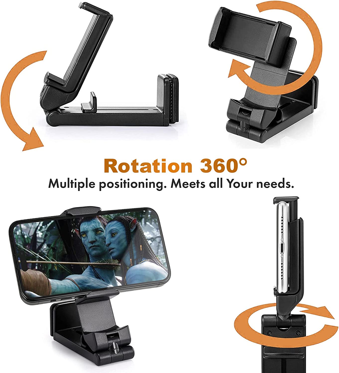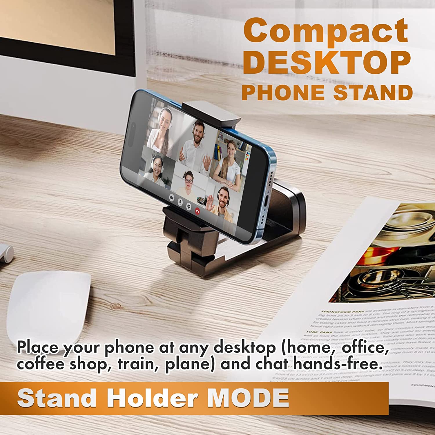 • Universal usability. Compact little gadget securely holds your phone on a luggage handle, tray table, desktop, chair, shelf, bed, book, power bank, or even as a short selfie stick.