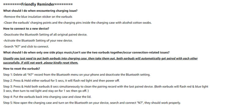 * Easy to use! Just open the charging case, our N7 wireless earphones will automatically connect with your device right away. (After 1st successful connection)