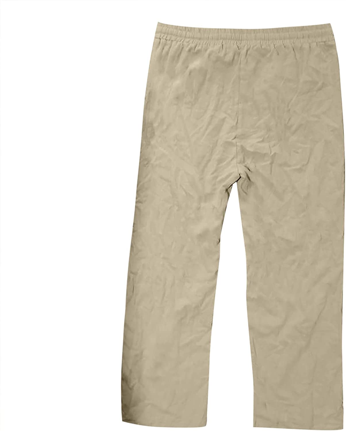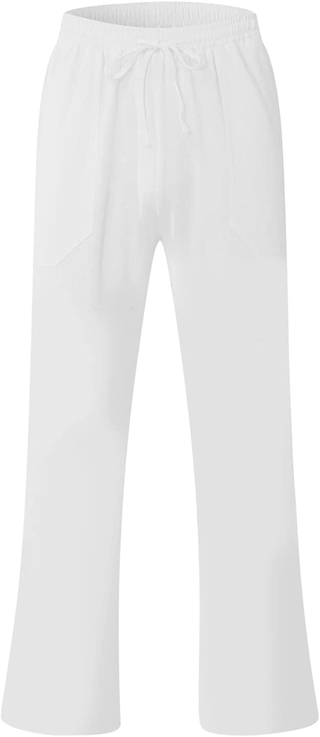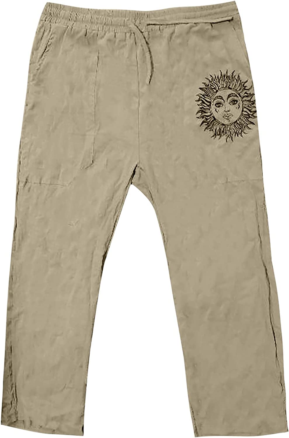 YKARITIANNA Casual Cotton Linen Pants Men,Basic Midweight Drawstring Quick Dry Loose Comfy Slacks,Printed Waistband Trousers