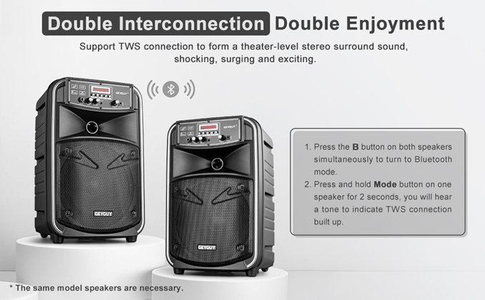 Yes, the True Wireless Stereo (TWS) function allows you to pair two GTSK8-1/GTSK8-2 speakers at the same time for even more powerful real stereo sound.
