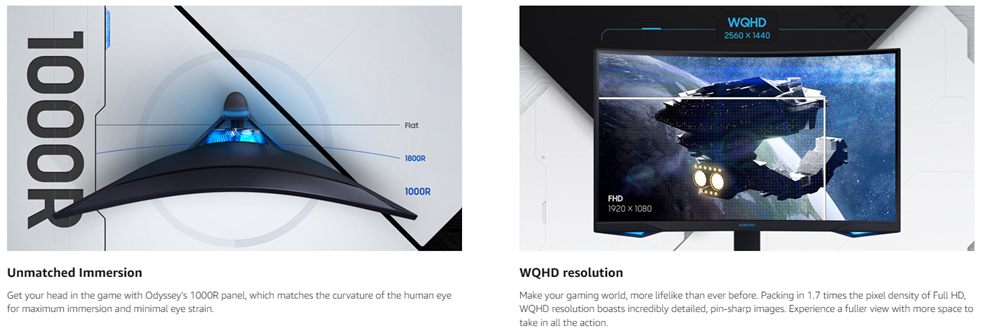 • UNMATCHED IMMERSION: Get your head in the game with Odyssey’s 1000R panel, which matches the curvature of the human eye for maximum immersion and minimal eye strain