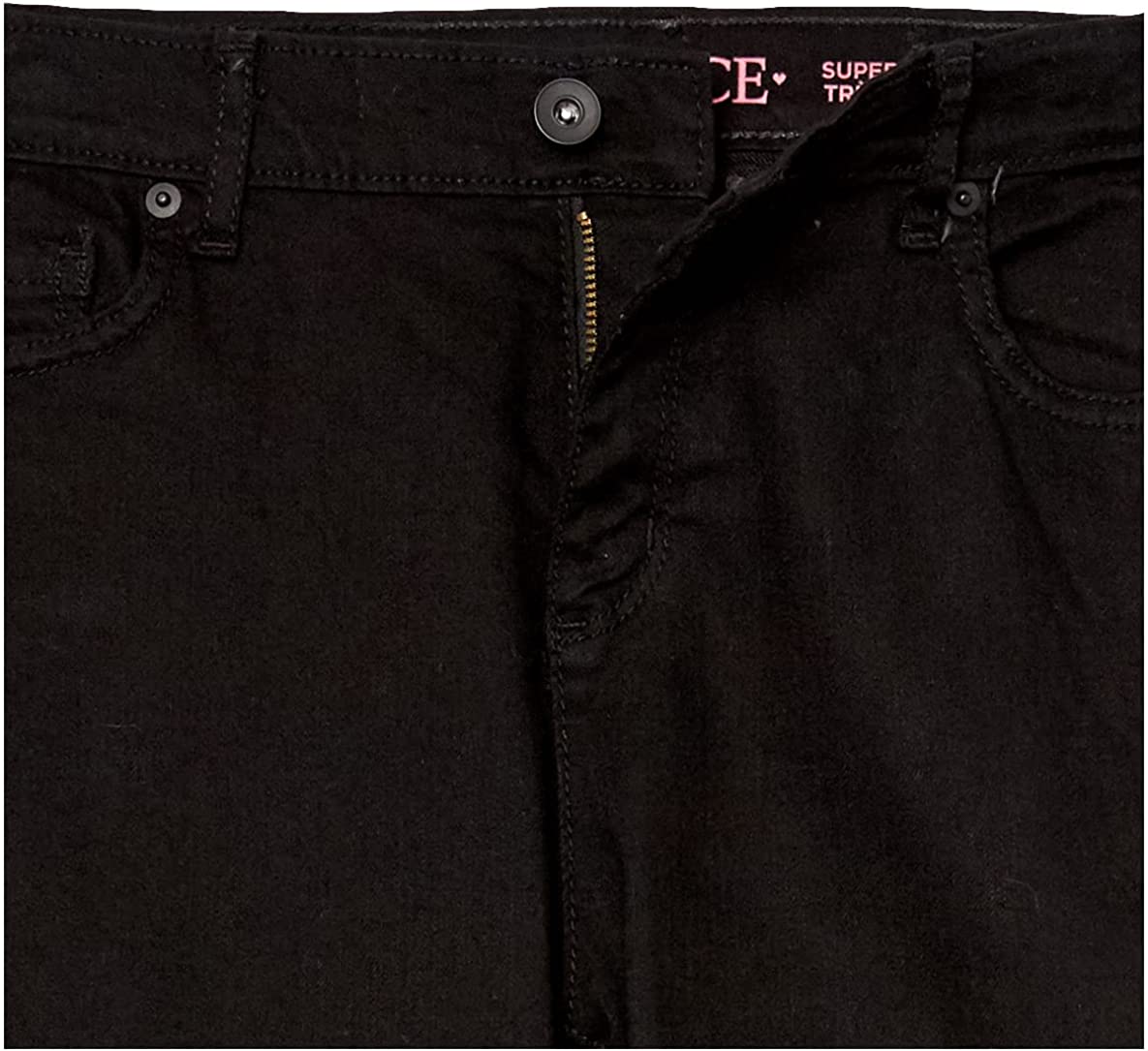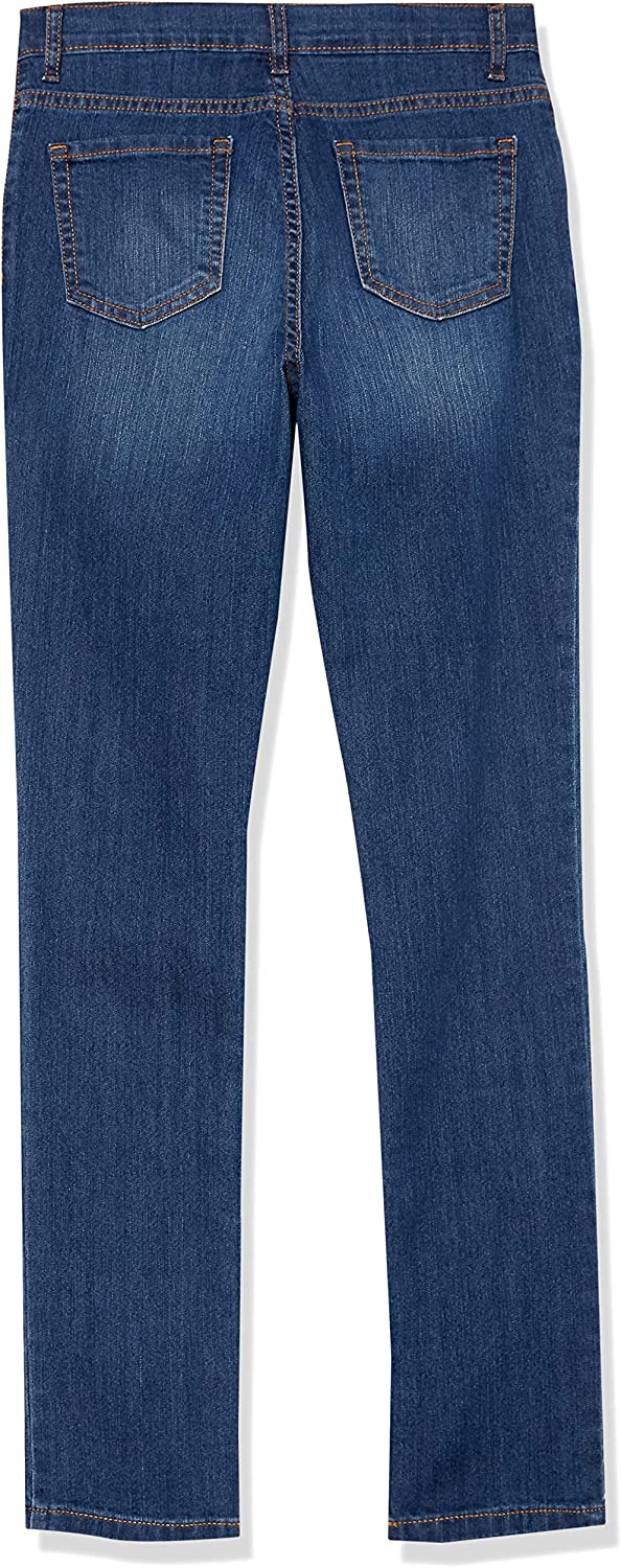 • Sleek fitted silhouettes with 5-pocket styling and inner adjustable waist tabs; snap closure with zipper fly for sizes 4-6X/7 and button closure with zipper fly for sizes 8-16
