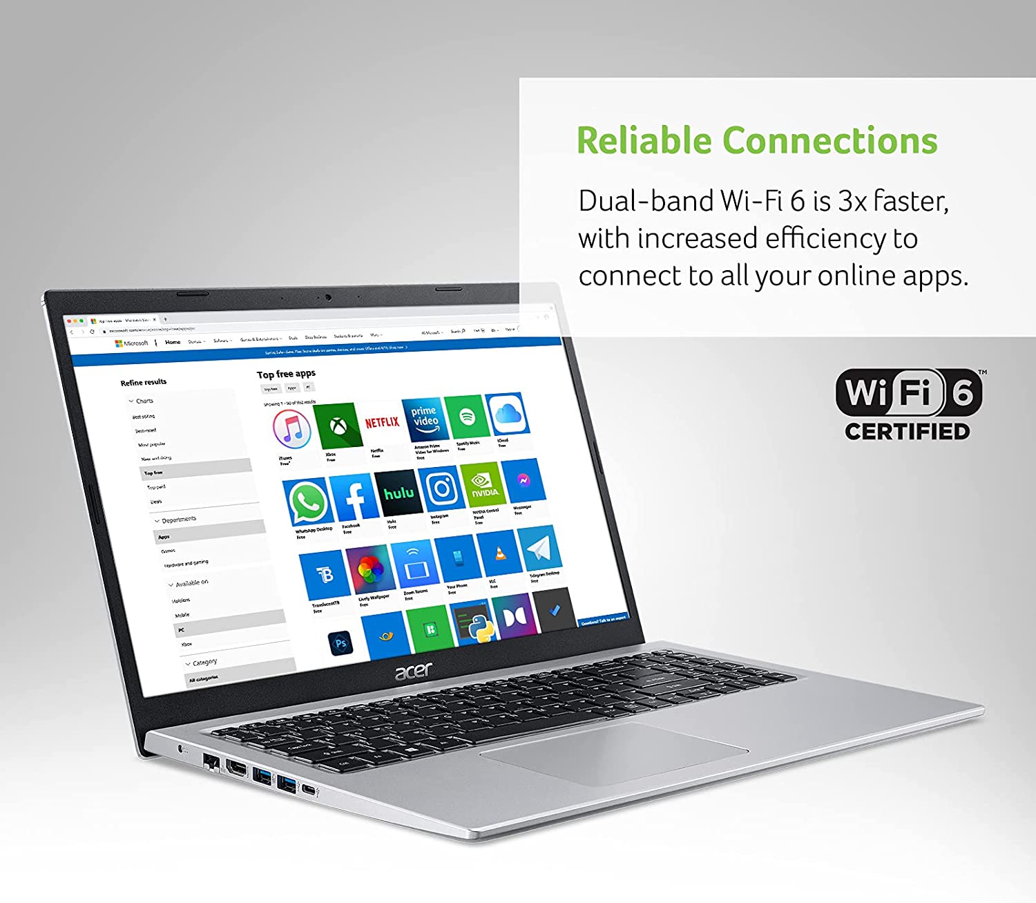 Acer Aspire 5 A515-56-32DK Slim Laptop - 15.6" Full HD IPS Display - 11th Gen Intel i3-1115G4 Dual Core Processor - 4GB DDR4 - 128GB NVMe SSD - WiFi 6?- Amazon Alexa - Windows 11 Home in S mode.