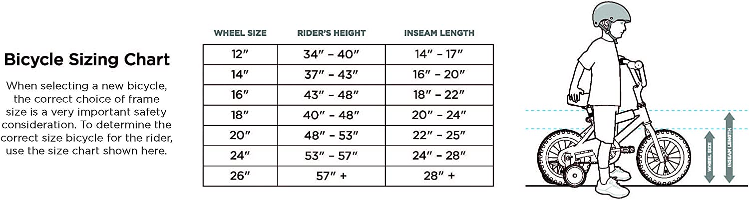 • 12 inch wheel size for rider 3-5 years or 34-40" tall