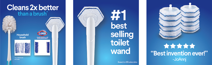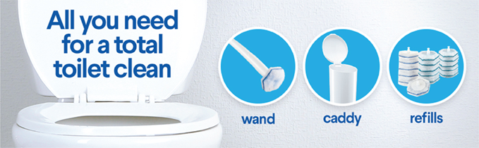 • Bathroom cleaning products: Eliminate the need to store a dirty, germ-ridden toilet brush with the convenient caddy that stores your toilet wand and refill heads for an all-in-1 bathroom household cleaner