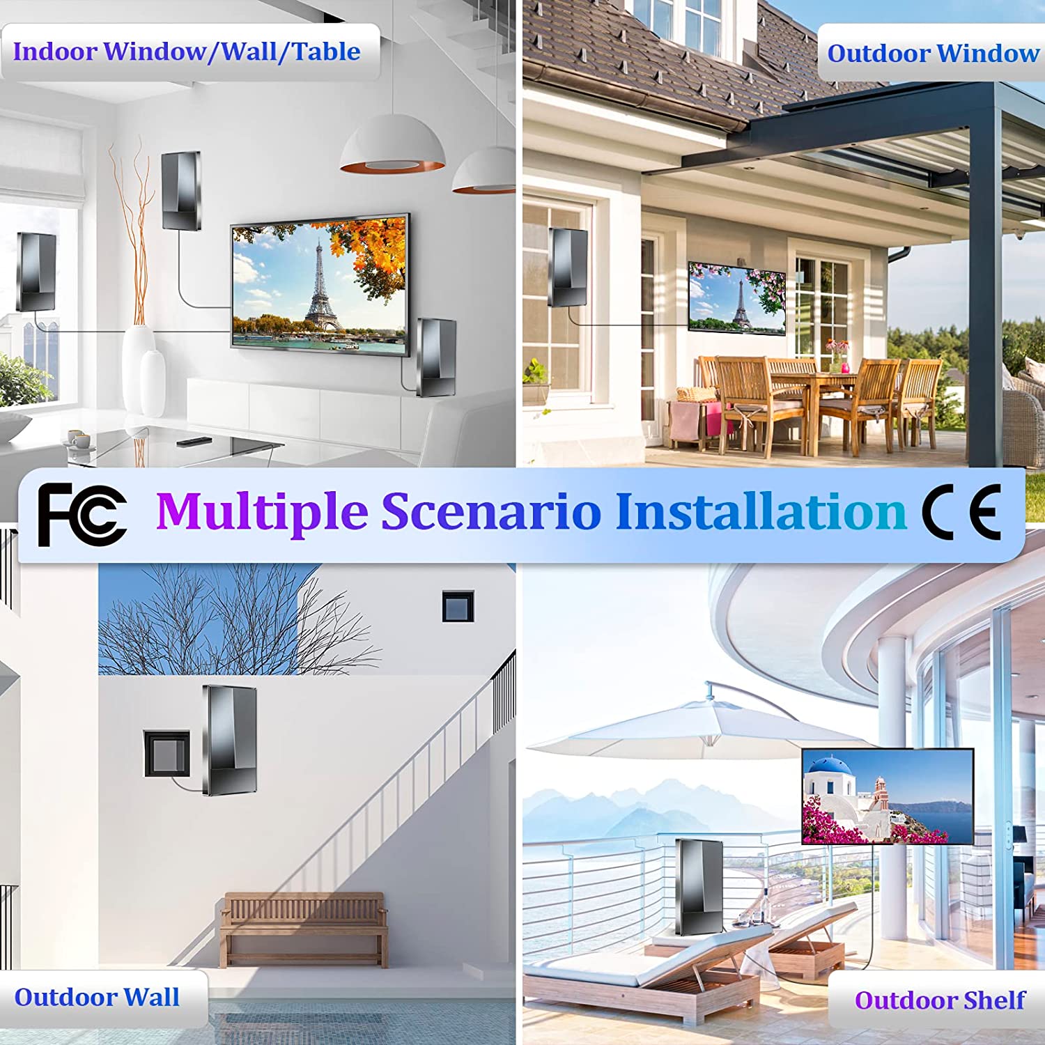 • ? 【HIGH QUALITY MATERIAL AND DESIGN】- The new environmentally friendly flame retardant material bring moisture and lightning protection to our indoor outdoor HDTV antennas. Upscale design fits any indoor or outdoor scences. You’ll be ready to enjoy local channels near you!