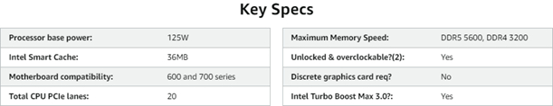 • Turbo Boost Max Technology 3.0, and PCIe 5.0 & 4.0 support. Intel Optane Memory support. No thermal solution included