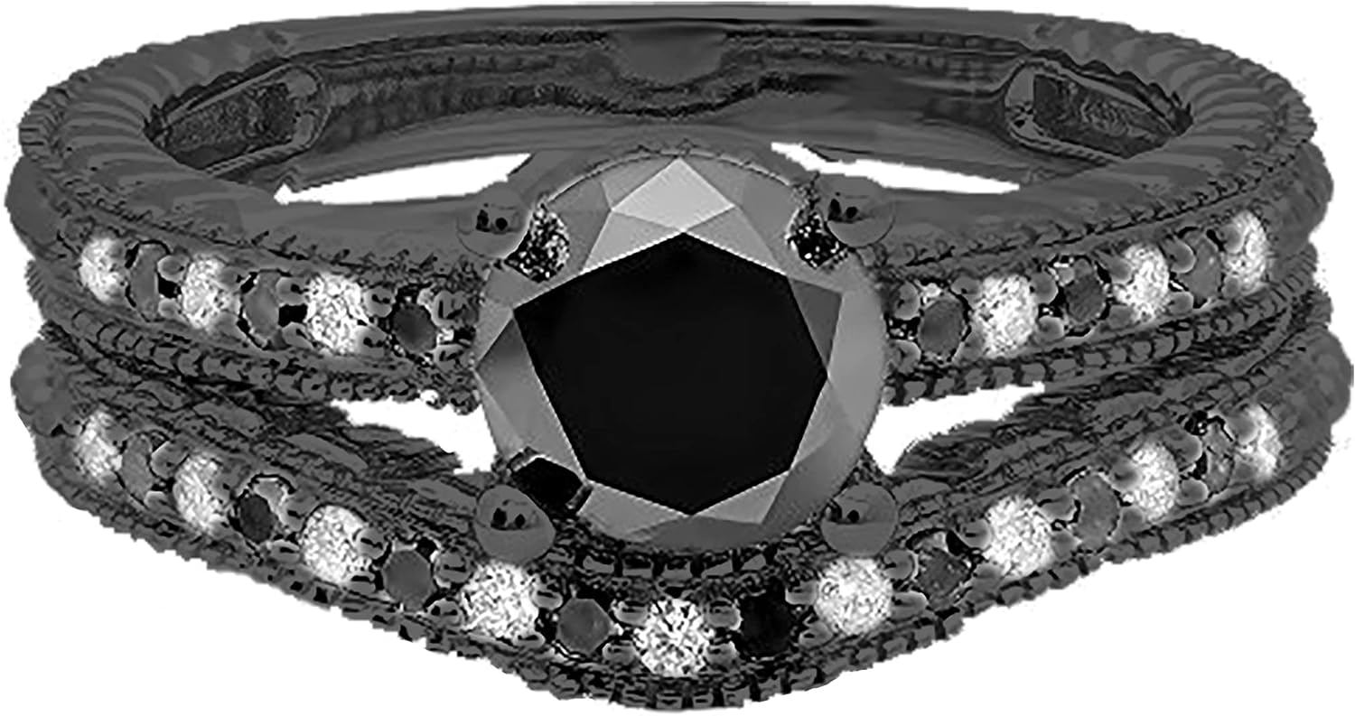 Dazzlingrock Collection 1.75 Carat (ctw) Round Black & White Diamond Bridal Engagement Ring Band Set for Her in Black Plated 10K White Gold