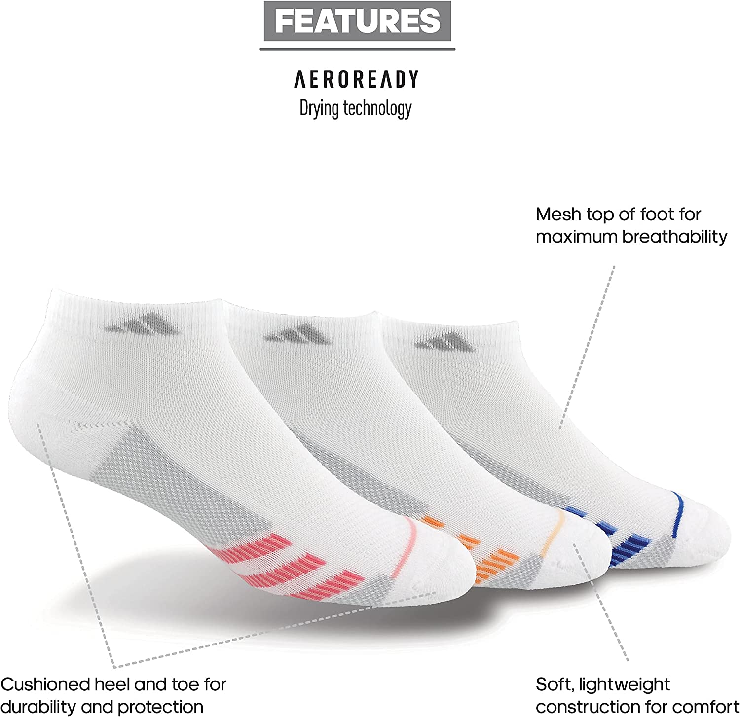 • Mesh on top of foot for ventilation to keep your feet cool and dry