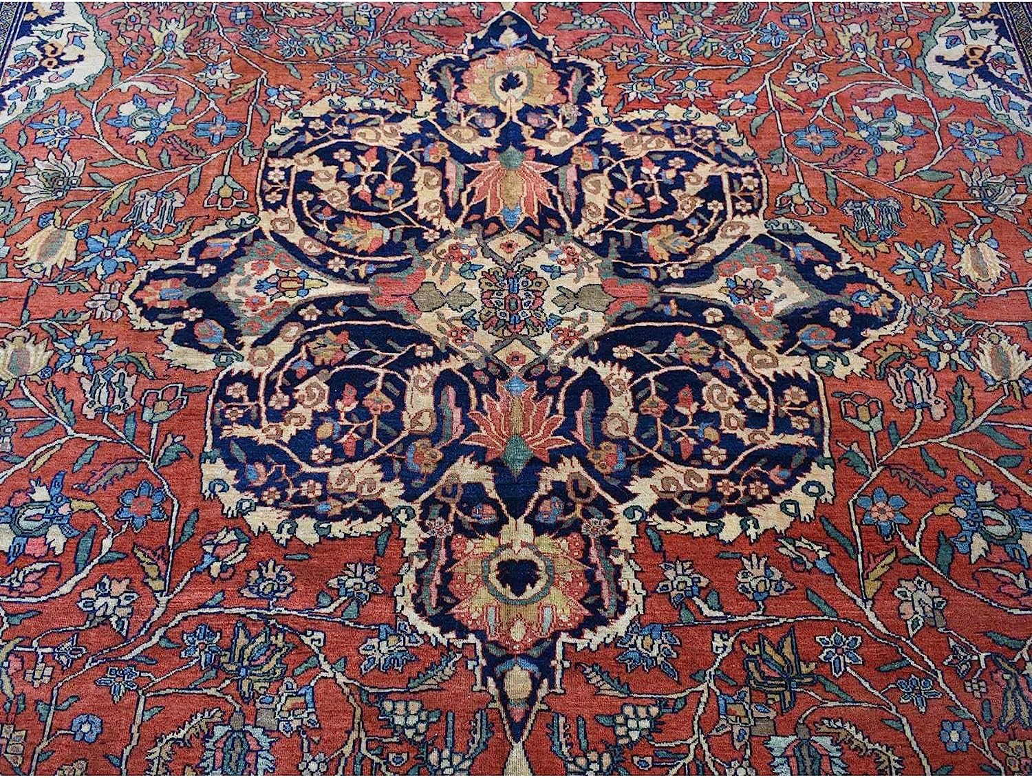 Shahbanu Rugs Barn Red, Antique Persian Feraghan Sarouk, Soft Wool Hand Knotted Rug (9'0" x 12'0")