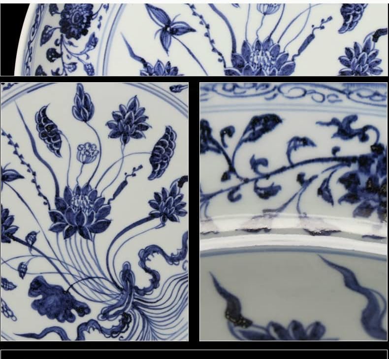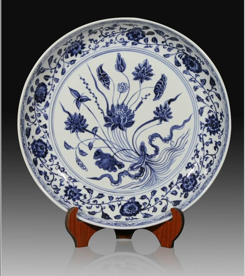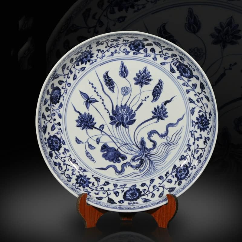 LIUYUNQI 16 Inch Antique Classic Hand Painted Blue and White Decoration Round Ceramic Plate