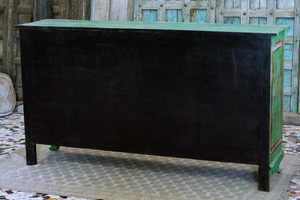 Antique Indian Brass Work Hand Carved Solid Wooden Sideboard Greenwash Mango Wood Indian Arched Sideboard Cabinet Storage Units Indian Solid Wood Finish,Living Room Bedroom Furniture,Modern Sideboard