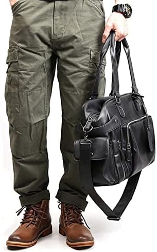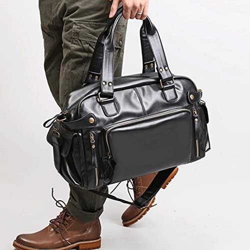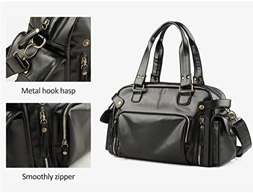 ZLXDP Leather Men's Travel Bag with Shoe Pocket 20 Inch Big Capacity Vintage Leather Weekend Messenger Bag