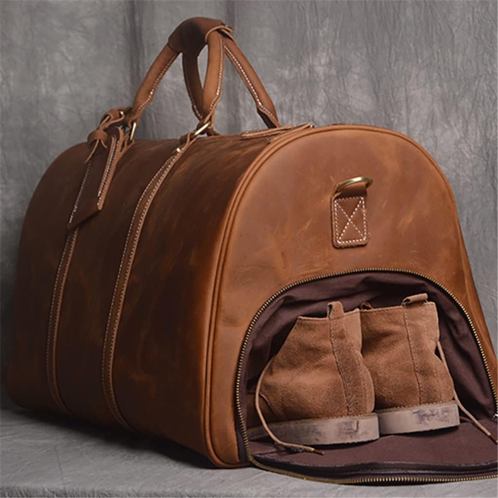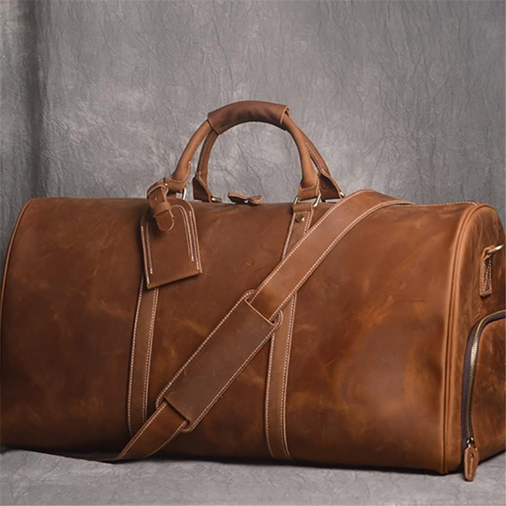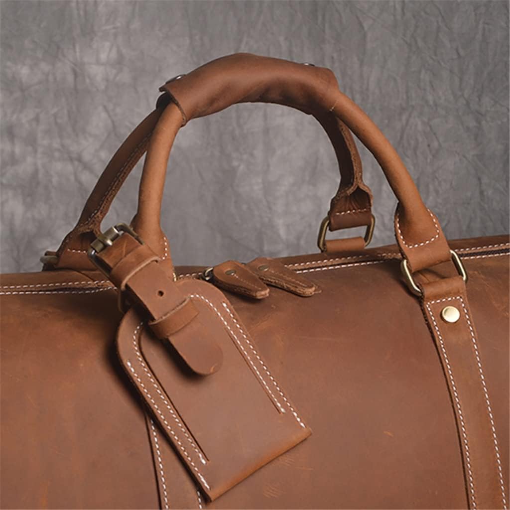 ZLXDP Leather Men's Travel Bag with Shoe Pocket 20 Inch Big Capacity Vintage Leather Weekend Messenger Bag