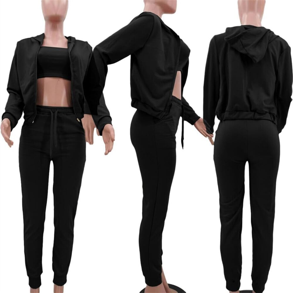QueenLine 10sets Bulk Items Wholesale Lots Winter Clothes for Women 3 Piece Set Long Sleeve Coat Vest Pants Casual Sport Wear Blue L