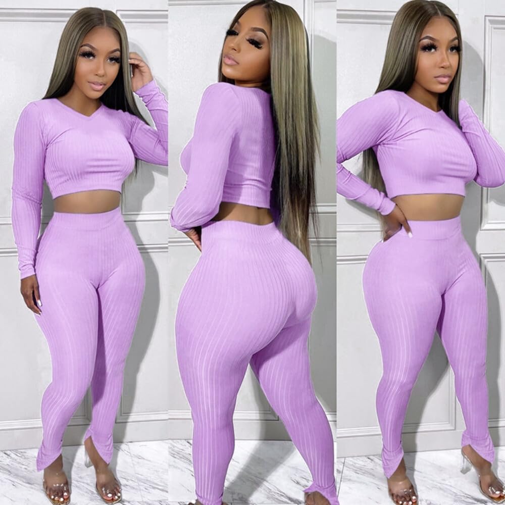 QueenLine 10pcs Wholesale Items for Business In Bulk Clothes Solid Knit Ribbed Two Piece Sets Women Fall Outfits Crop Top + Leggings Tracksuit Red S