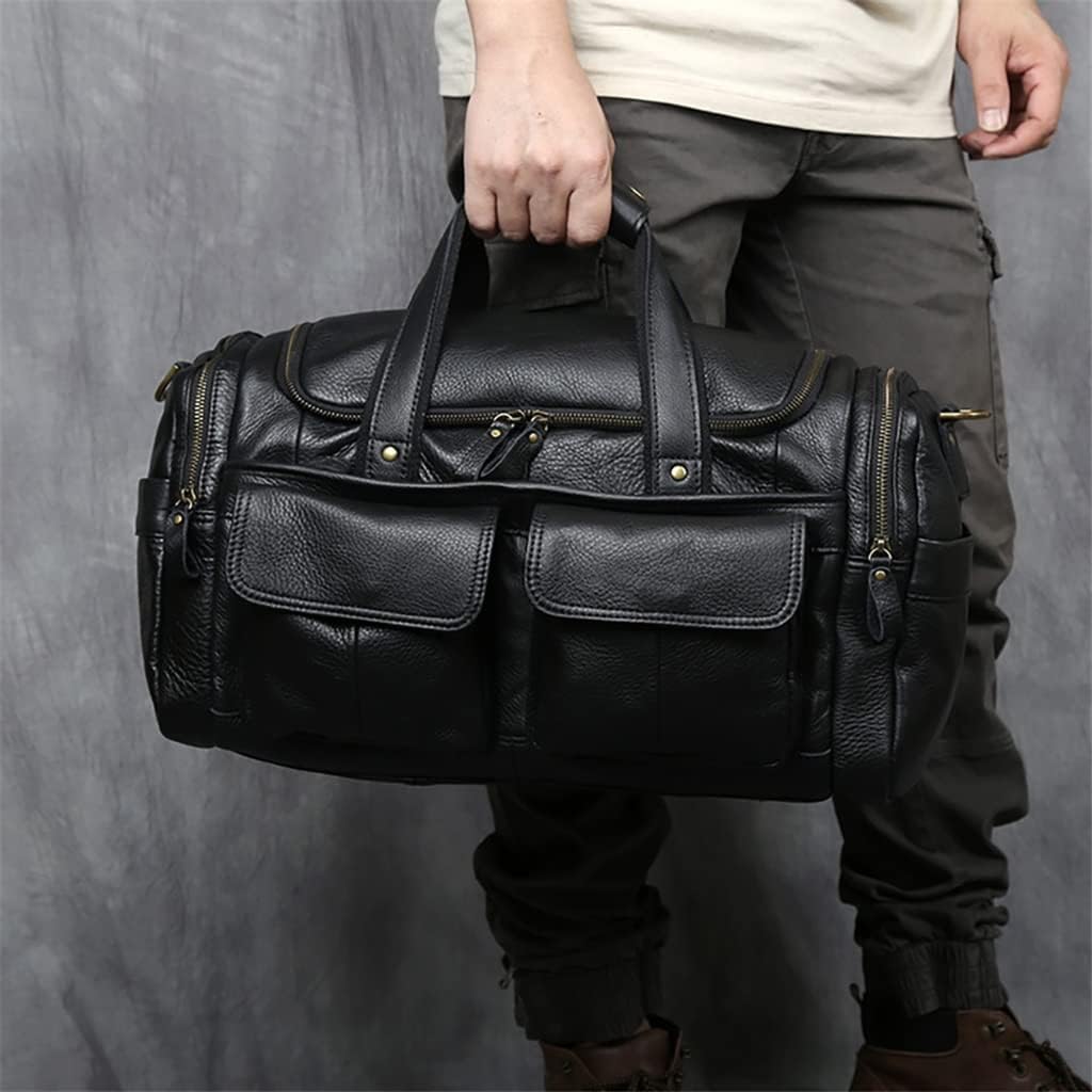 FEER Men's Hand Luggage Bag Travel Bag Genuine Leather Large Capacity Single Shoulder Messenger for 14 Inch Laptop