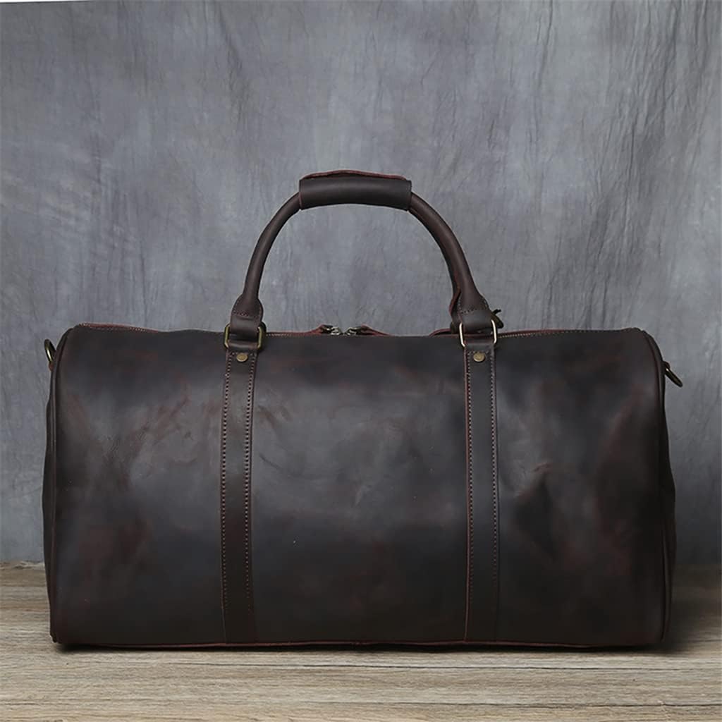 ZLXDP Leather Men's Travel Bag with Shoe Pocket 20 Inch Big Capacity Vintage Leather Weekend Messenger Bag
