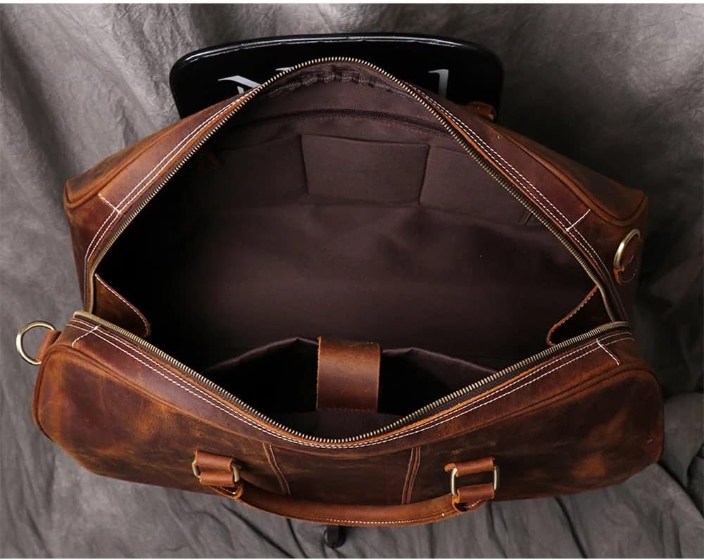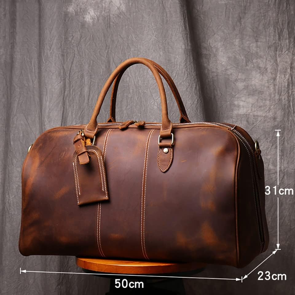 ZLXDP Leather Men's Travel Bag with Shoe Pocket 20 Inch Big Capacity Vintage Leather Weekend Messenger Bag