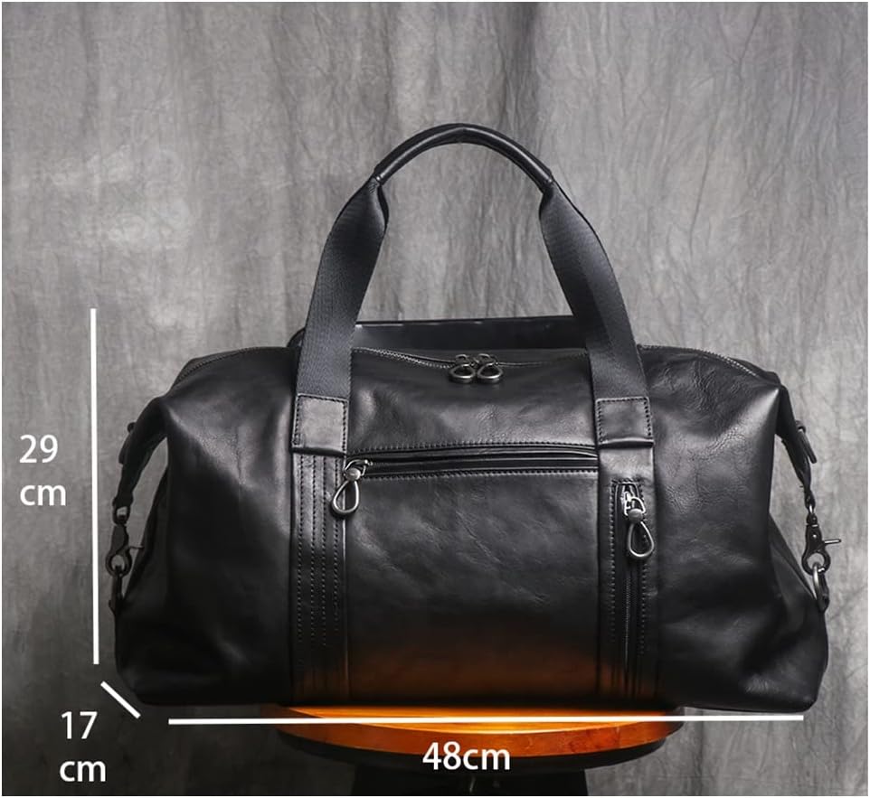 ZLXDP Leather Men's Travel Bag with Shoe Pocket 20 Inch Big Capacity Vintage Leather Weekend Messenger Bag
